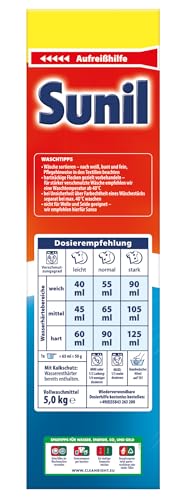 Sunil aktiv Pulver - Vollwaschmittel - für 100 Wäschen - Flecklösekraft, hautverträglich, mikroplastikfrei, vegan - 5 kg