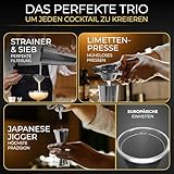 | enthaltene komponenten | 2x Ausgießer, Rezeptkarten, Gestell, Boston Shaker, Jigger/Messbecher, Barlöffel, Hawthorne Sieb, Fine Mesh Sieb, Citruss Peeler, Limettenpresse, 4x Trinkhalme, Flaschenöffner, Muddler/Stampfer, 2x Ausgießer, Eiszange |