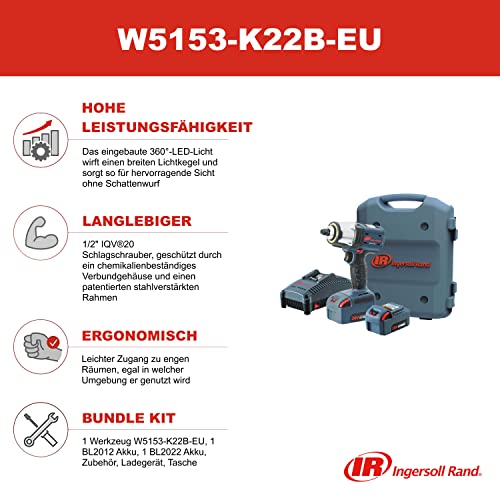 | Lieferumfang | Schlagschrauber W5153, 2xBL2022 Akkus 5,0Ah, Ladegerät BC1121 EU, Koffer |