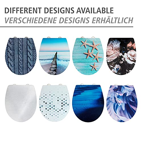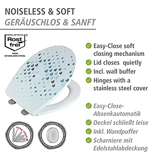 WENKO WC-Sitz Cuore mit Relief-Oberfläche, Toilettendeckel mit Absenkautomatik, aus bruchsicherem, antibakteriellem Duroplast, Schnellbefestigung aus rostfreiem Edelstahl, 38 x 44,5 cm, Herz-Motiv