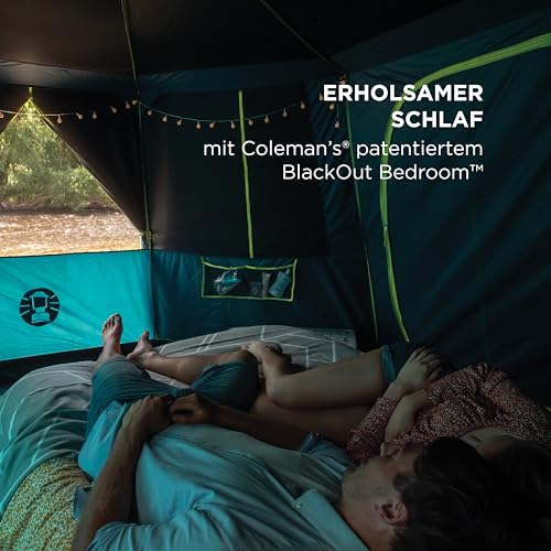 Coleman Zelt Octagon Blackout, 8 Mann Zelt, Familienzelt 8 Personen, Festivalzelt, Luxus Zelt, Steilwandzelt Hauszelt, 2 Türen, 7 Fenster, wasserdicht WS 2.000 mm