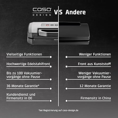 CASO VRH 490 advanced Vakuumierer, Testurteil Sehr Gut Folienschweißgerät, bis zu 100 Vakuumiervorgänge non-stop, herausnehmbare Vakuumkammer, inkl. 10 Profi-Folienbeutel