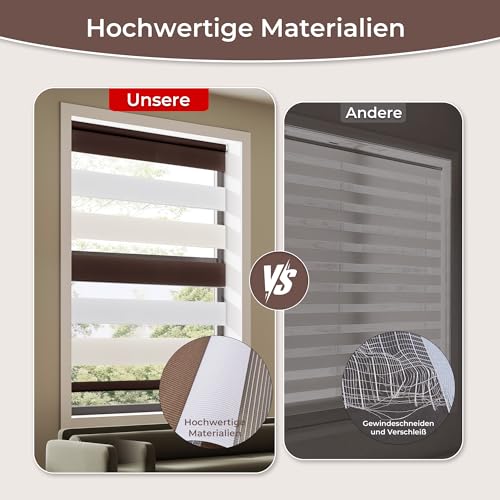 Allesin Doppelrollo Klemmfix ohne Bohren & mit Bohren, Duo Rollos für Fenster und Tür, Klemmrollo Fensterrollo lichtdurchlässig, Sichtschutz und Sonnenschutz, 95x140cm (BxH), Weiß-Beige-Braun