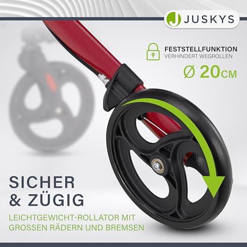 Juskys Rollator Vital faltbar, leicht & höhenverstellbar aus Aluminium bis 130 kg mit Sitz Rot