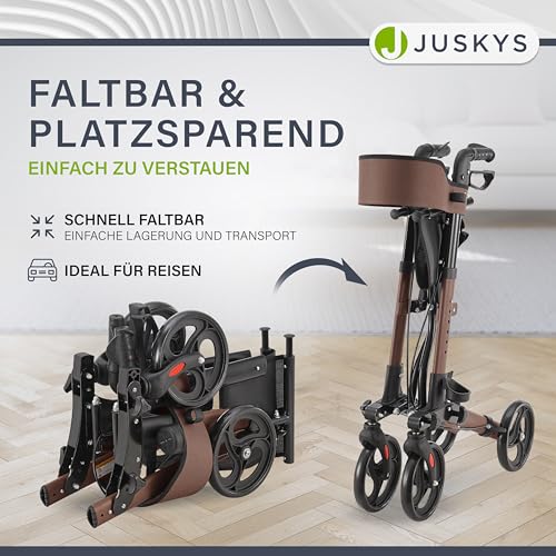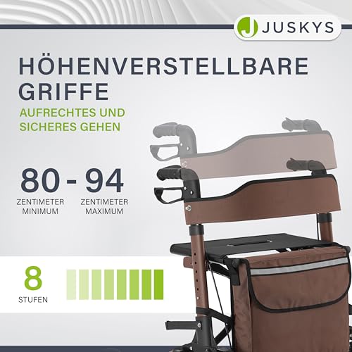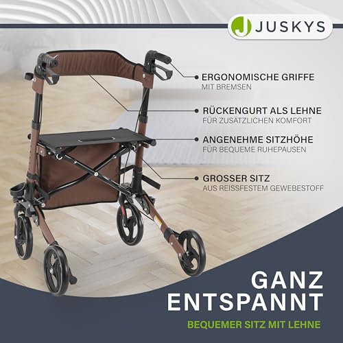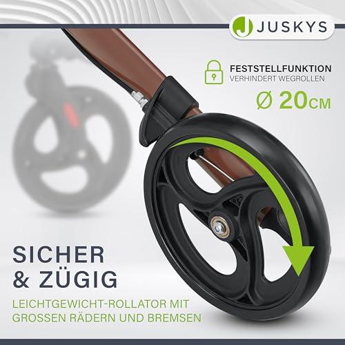 Juskys Rollator Vital faltbar, leicht & höhenverstellbar aus Aluminium bis 130 kg mit Sitz Braun