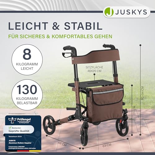 Nicht auf LagerJuskys Rollator Vital faltbar, leicht & höhenverstellbar aus Aluminium bis 130 kg mit Sitz Braun