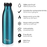 Milu Edelstahl Trinkflasche 350ml 500ml 750ml 1L 1,5L Thermosflasche, Isolierte Wasserflasche, Auslaufsichere Isolierflasche doppelwandig, Kohlensäure geeignet – inkl. Reinigungsbürste (Grün, 500ml)