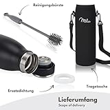 Milu Edelstahl Trinkflasche 500ml, 750ml, 1L, 1,5L – Thermosflasche, Isolierte Wasserflasche, Auslaufsichere Isolierflasche doppelwandig, Kohlensäure geeignet (Edelstahl, 1000ml)