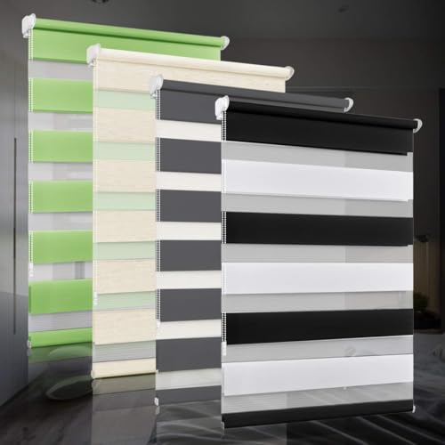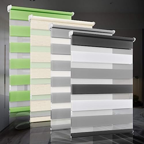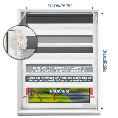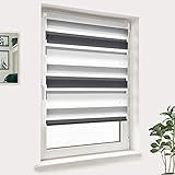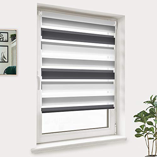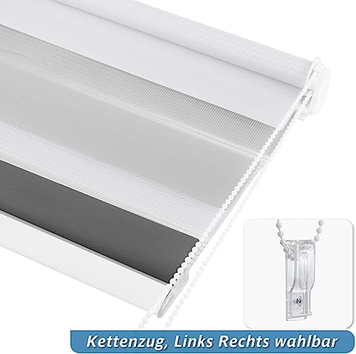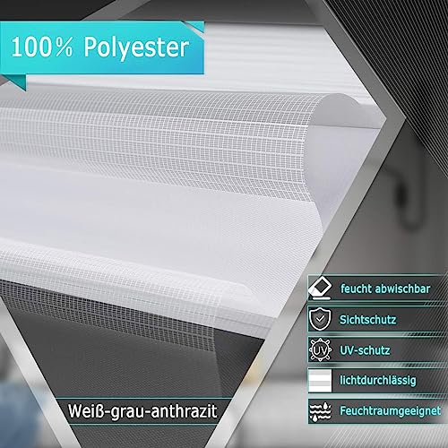 Doppelrollo klemmfix ohne Bohren Duo Rollos für Fenster mit Klemmträger, Fensterrollo lichtdurchlässig & verdunkelnd Wandmontage Sichtschutz - Weiß Grau Anthrazit B55 x H140 cm