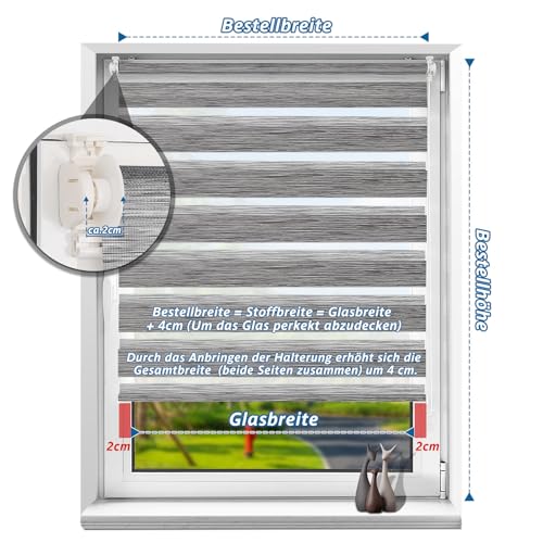 bobodeco Doppelrollo klemmfix ohne Bohren Duo Rollos für Fenster mit Klemmträger, Fensterrollo lichtdurchlässig & verdunkelnd Wandmontage Sichtschutz - Dunkelgrau B55 x H130 cm