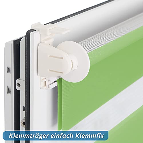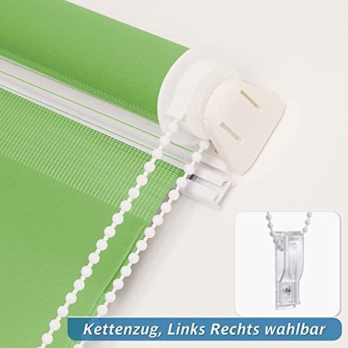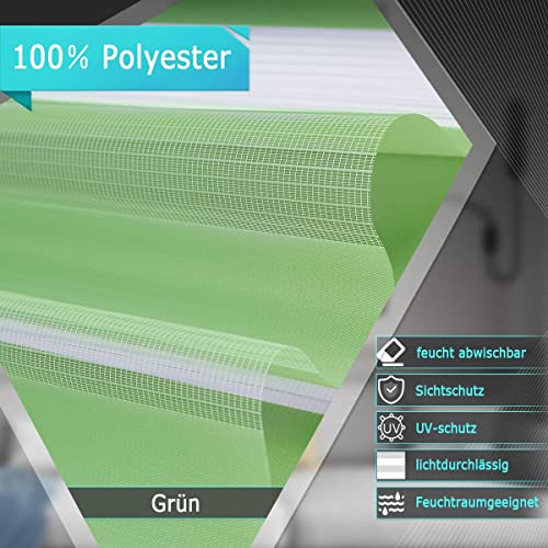 bobodeco Doppelrollo klemmfix ohne Bohren Duo Rollos für Fenster mit Klemmträger, Fensterrollo lichtdurchlässig & verdunkelnd Wandmontage Sichtschutz - Grün B80 x H140 cm