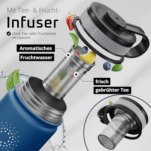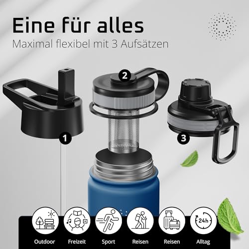 Trinkflasche Edelstahl ACTIVE FLASK + Strohhalm (3 Deckel) BPA-frei, Auslaufsicher, Kohlensäure geeignet - Wasserflasche Fahrrad Thermosflasche Isoliert Isolierflasche Sport Wasser Flasche Kinder Tee