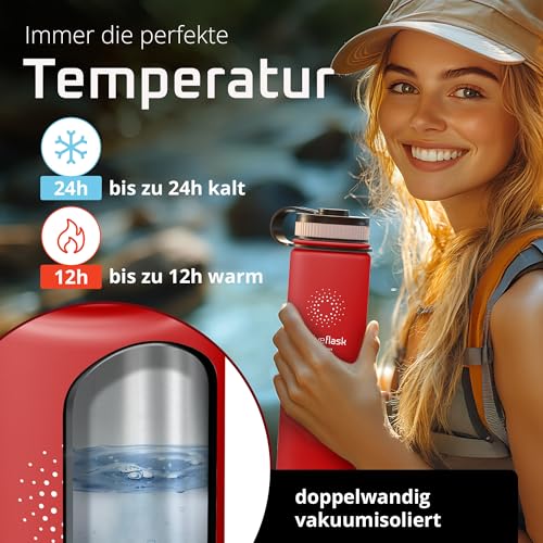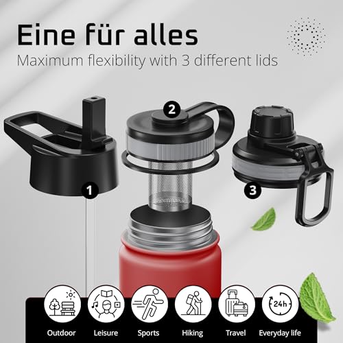 Trinkflasche Edelstahl ACTIVE FLASK + Strohhalm (3 Deckel) BPA-frei, Auslaufsicher, Kohlensäure geeignet - Wasserflasche Fahrrad Thermosflasche Isoliert Isolierflasche Sport Wasser Flasche Kinder Tee