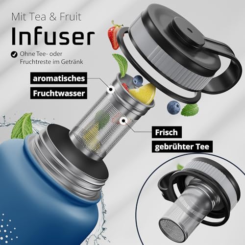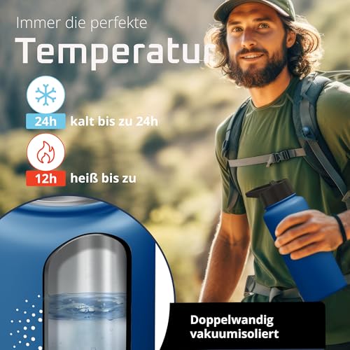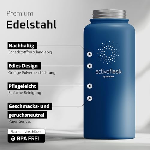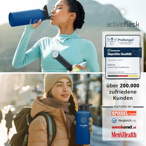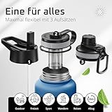 Trinkflasche Edelstahl ACTIVE FLASK + Strohhalm (3 Deckel) BPA-frei, Auslaufsicher, Kohlensäure geeignet - Wasserflasche Fahrrad Thermosflasche Isoliert Isolierflasche Sport Wasser Flasche Kinder Tee