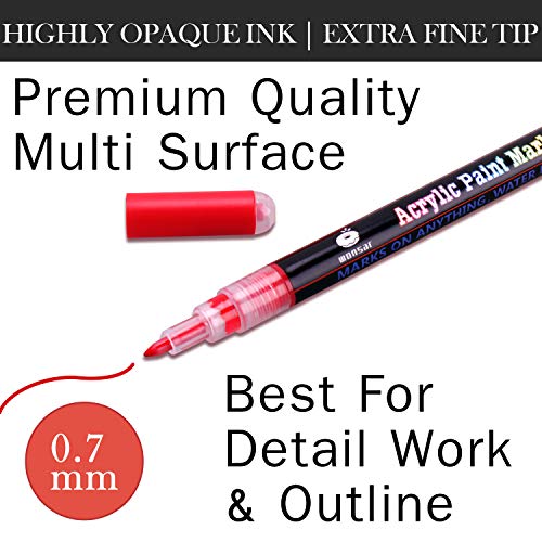 wonsar Acrylstifte Marker Stifte, 12 Farben Wasserfest Acrylstifte für Steine Bemalen, Acrylfarben Stifte für Kinder DIY Keramik Glas Porzellan Metall Kunststoff Holz, Leinwand (0.7mm Spitze)