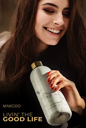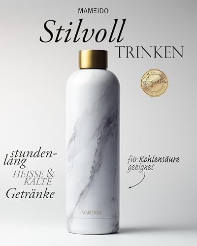 MAMEIDO Thermosflasche 750 ml, auslaufsichere Trinkflasche Edelstahl, Kohlensäure geeignet, BPA frei, Isolierflasche 12h heiß & 24h kalt (White Marble Gold)