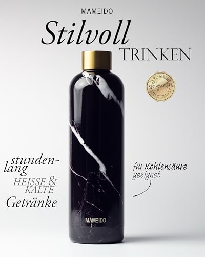 MAMEIDO Thermosflasche 750 ml, auslaufsichere Trinkflasche Edelstahl, Kohlensäure geeignet, BPA frei, Isolierflasche 12h heiß & 24h kalt (Black Marble Gold)