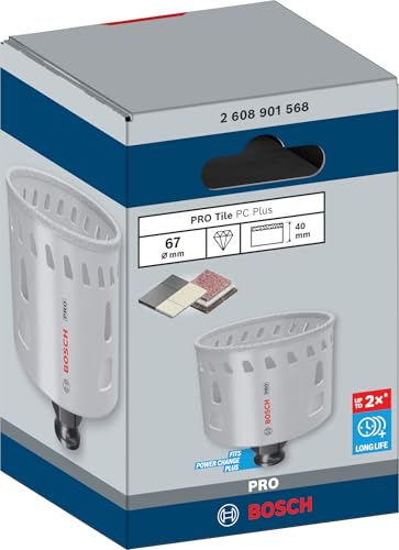 Bosch 1x PRO Tile Power Change Plus Lochsäge (für Harte Fliesen, Weiche Fliesen, Ø 67 mm, Professional Zubehör Bohrmaschine)