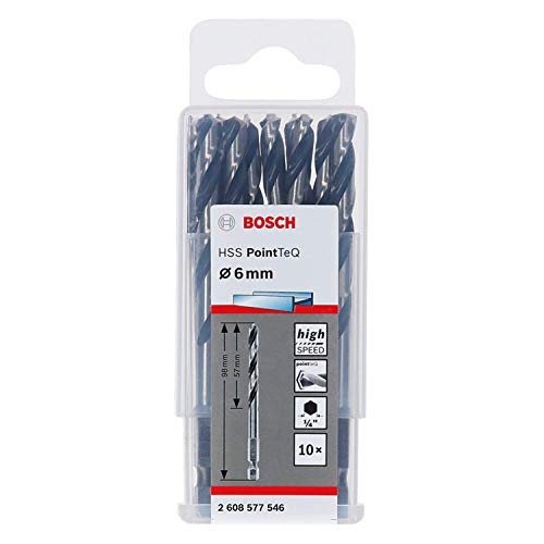 10x BOSCH HSS-Spiralbohrer PointTeQ mit Sechskantschaft, Ø 6,0 x 57 mm