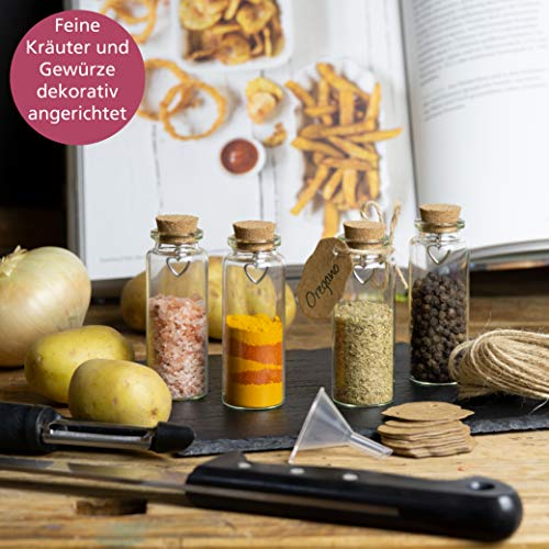WeddingTree Reagenzglas mit Korken 30 x 40 ml - Kleine Glasflaschen mit Korken und Herz Anhänger - Als Gastgeschenk, Hochzeitsdeko, Gewürzgläser, Deko Weihnachten