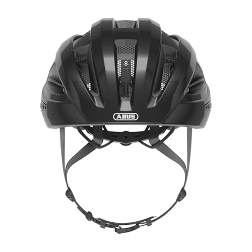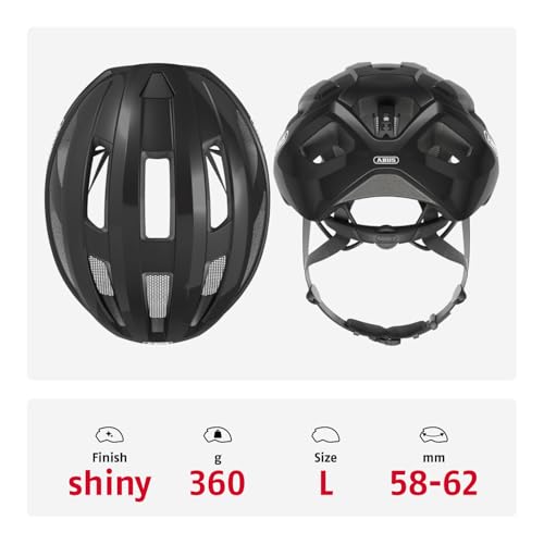 ABUS Rennradhelm Macator - sportiver Fahrradhelm für Einsteiger - auch für Zopfträger/-innen - für Damen und Herren - Schwarz Glänzend, Größe L