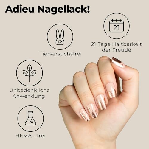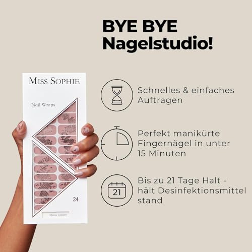 Original Miss Sophie Nagelfolien Classy Copper I 24 ultra-dünne Nagellack-Streifen in Metallic Rosa I Für Finger- & Fußnägel I Hält auf Natur- sowie lackierten, Acryl-, Gel- & Shellac-Nägeln