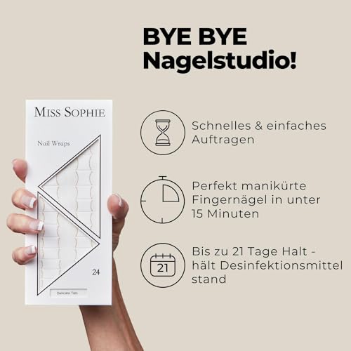 Original Miss Sophie Nagelfolien I 24 ultra-dünne Nagellack-Streifen Delicate French Tip weiß I Für Finger- & Fußnägel I Hält auf Natur- sowie lackierten, Acryl-, Gel- & Shellac-Nägeln