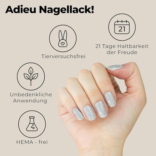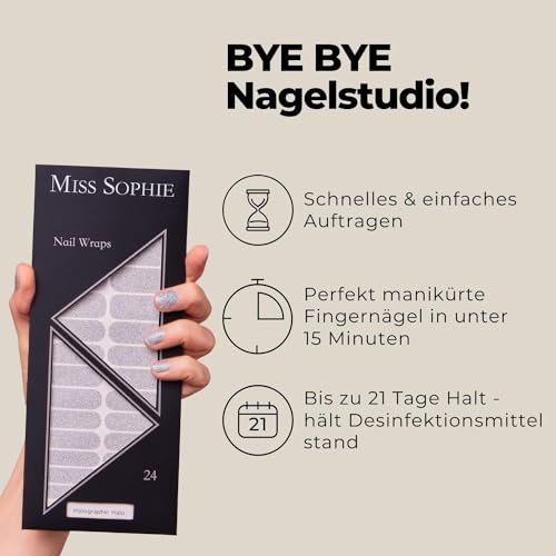 Original Miss Sophie Nagelfolien Holographic Halo I 24 ultra-dünne Nagellack-Streifen mit Glitzer in Silber I Für Finger- & Fußnägel I Hält auf Natur- sowie lackierten, Acryl-, Gel- & Shellac-Nägeln
