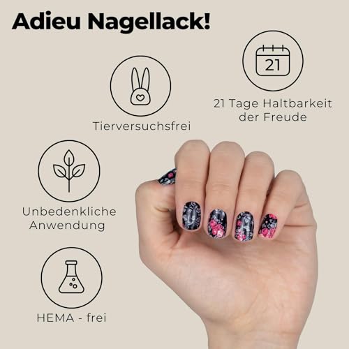 Original Miss Sophie Nagelfolien Sleeping Beauty I 24 ultra-dünne Nagellack-Streifen mit dunklem Blumenmuster I Für Finger- & Fußnägel I Hält auf Natur- sowie lackierten, Acryl-, Gel- & Shellac-Nägeln