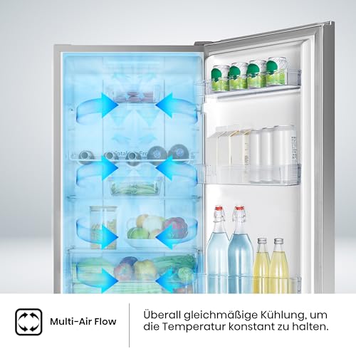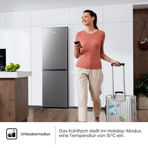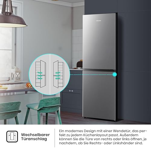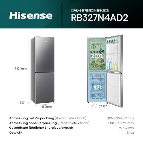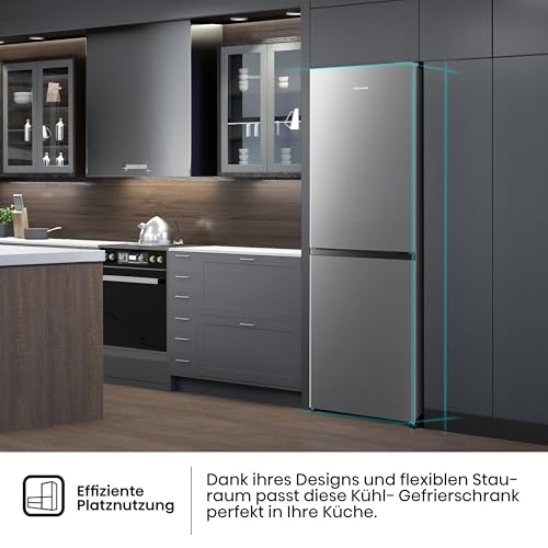 Hisense RB327N4AD2 Kühl-Gefrierkombination/ NoFrostPlus/ Multiflow 360°/ HolidayMode/ FreshZone/ 182,4 cm/ Kühlteil 171 l/ Gefrierteil 85 l/ 41 dB/ 287 kWh/ Jahr/ Edelstahl-Look