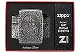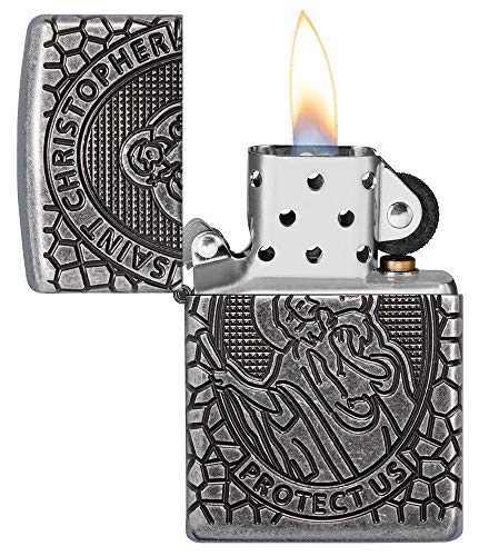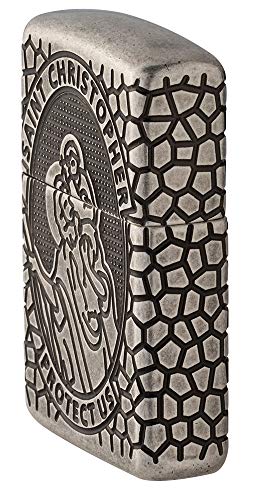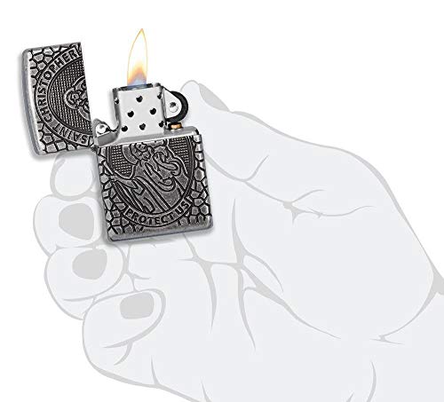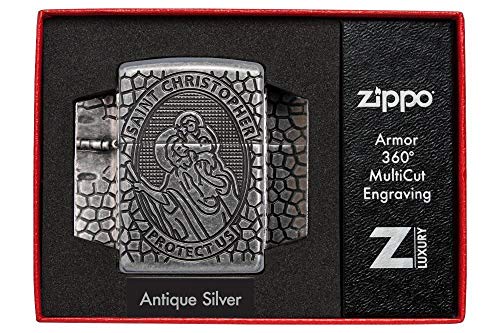Zippo Sturmfeuerzeug - St. Christopher Medal, Antique Silver, MultiCut - Nachfüllbar - Wiederverwendbar - Windfestes Design - Geschenkbox - Made in USA