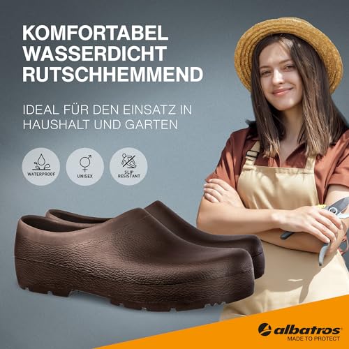 ALBATROS PURCEL Profi Clogs Unisex braun Gr. 39 – wasserdichter Freizeit- und Gartenschuh für Herren und Damen mit Premium Fußbett