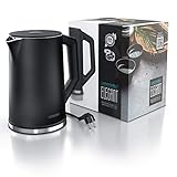 Arendo - Edelstahl Wasserkocher mit Temperatureinstellung 40-100 Grad in 5er Schritten - Doppelwand Design - Modell ELEGANT - 1,5 Liter - 2200 W - Teekocher mit Temperaturanzeige - GS - Schwarz