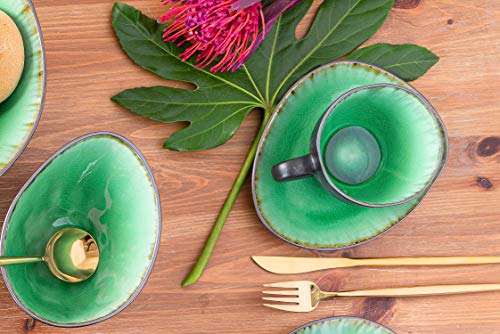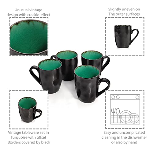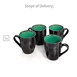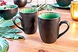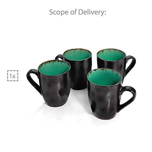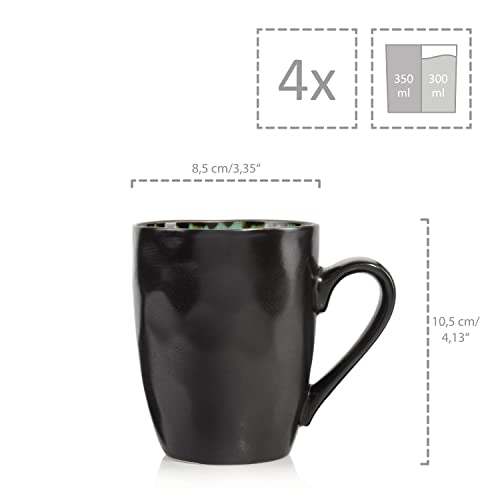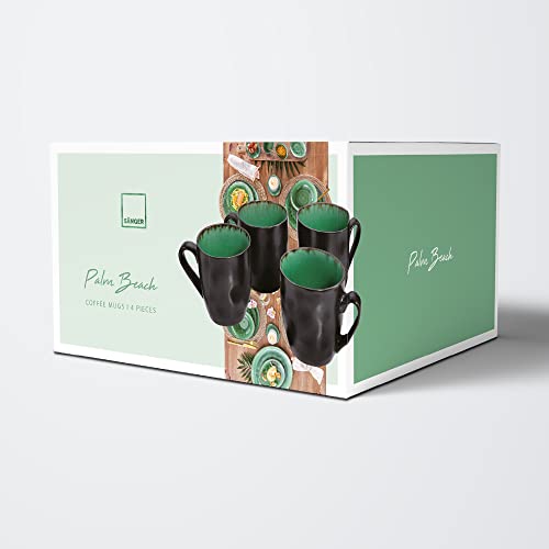 SÄNGER Becher Palm Beach Kaffeebecher Grün Schwarz, 4-tlg., Steingut, 300 ml, Handmade, Premium Collection