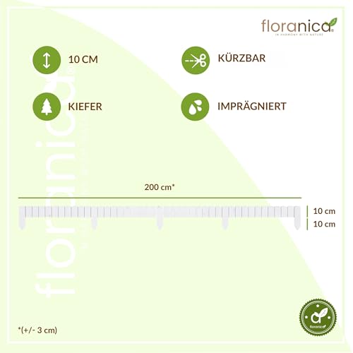Floranica Rasenkante Höhe 10 cm Weiß 200 cm Lang Gartenzaun Flexibler Holzzaun Gartendeko Gartenpalisade für Beeteinfassung, Mähkante Rollborder, Steckzaun Blumenbeet Umzäunung für Garten