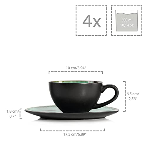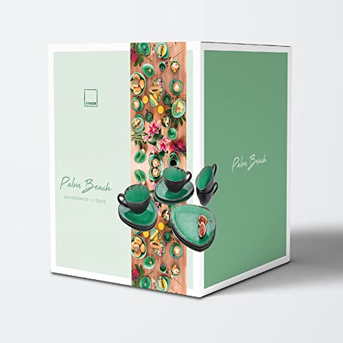 SÄNGER Kaffeeservice Palm Beach (12-tlg), 4 Personen, Steingut, Kaffeetassen Set, Grün Schwarz, Handmade, Premium Collection