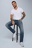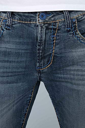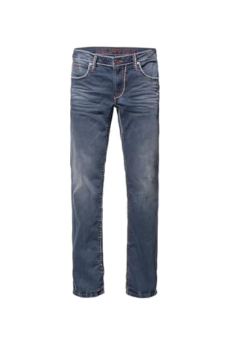Camp David NI:CO Herren Jeans Regular Fit Stretch Dark Used Vintage | gerades Bein, mittlere Leibhöhe, Five-Pocket & Zip-Fly, farbige Steppnähte, 3D-Knitter und Moustache-Effekte 30 34
