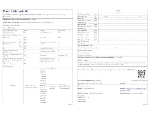 Klarstein Weinkühlschrank, 1 Zonen Getränkekühlschrank,