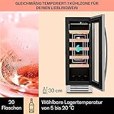 Klarstein Weinkühlschrank, 1 Zonen Getränkekühlschrank, Kleiner Einbau-Weinschrank Schmal, 50L Wein-Kühlschrank mit Glastür, Indoor/Outdoor Flaschenkühlschrank, Wine Fridge 5-20°C, 20 Flaschen