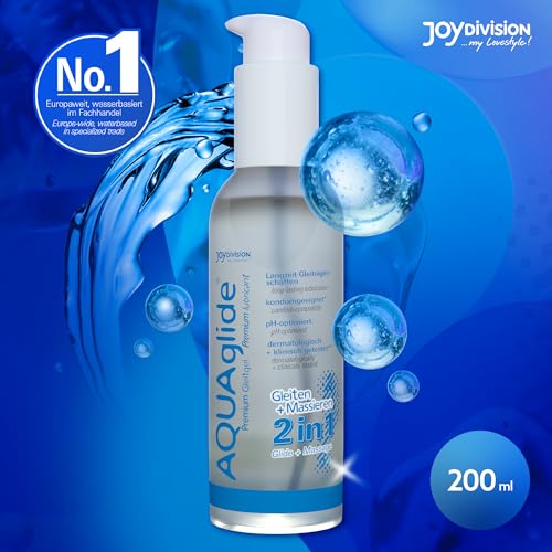 JOYDIVISION AQUAglide 2-in-1, 200 ml, wasserbasiertes Massage & Gleitgel, transparent und geruchsneutral, ölfreies Gleitmittel & kompatibel mit Latex-Kondo Men