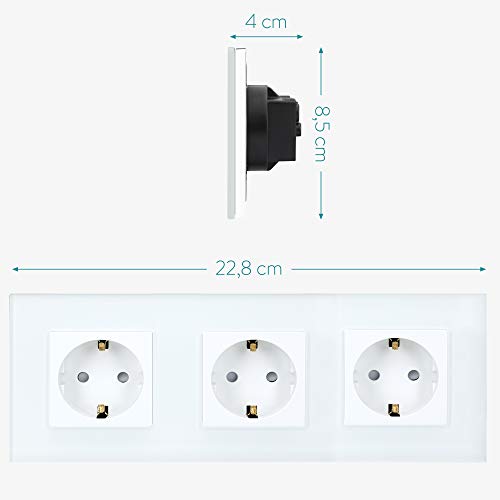 Glas Schuko Steckdose dreifach Design Schutzkontakt Wandsteckdose Glasrahmen