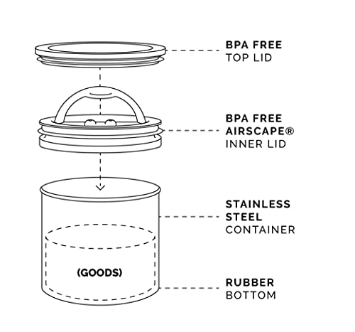 Airscape Edelstahl-Kaffeebehälter – Vorratsbehälter für Lebensmittel – Patentierter luftdichter Deckel – Erhaltung der Lebensmittelfrische durch überschüssige Luft (klein, mattschwarz)
