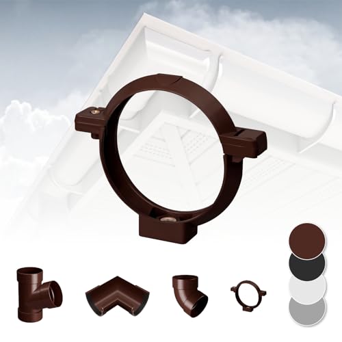 RAINWAY L Regenrinnen System (Rohrschelle braun) - PVC-U Kunststoff in 4 Farben, für Dachflächen > 100m² empfohlen, Fallrohrschellen Befestigung