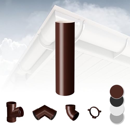 Regenrinnen Komponenten Dachflächen 100m² PVC in 4 Farben RainWay L: Braun, Fallrohr