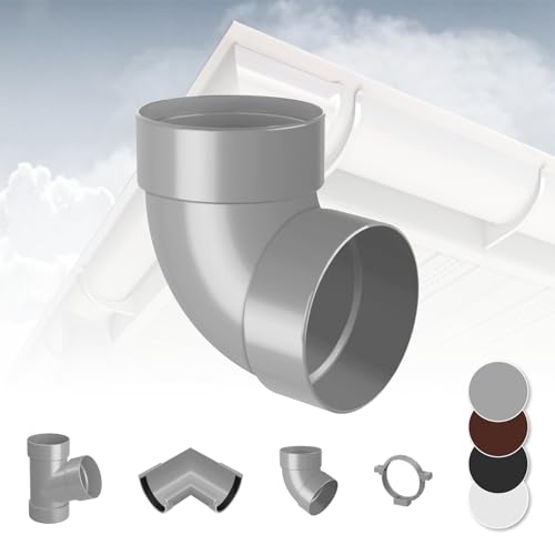 Regenrinnen Komponenten Dachflächen 100m² PVC in 4 Farben RainWay L: Grau, Rohrbogen 87° zweifach