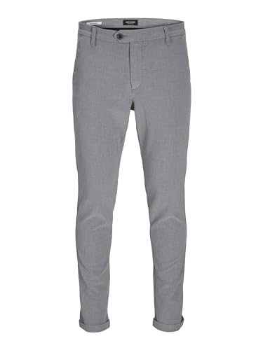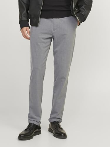 Chinohose JACK & JONES MARCO – Chinohose mit Stretchanteil und Komfort, Herren, Gr. 34, Länge 30, grau (grau melange), Web, Obermaterial: 68% Polyester, 29% Viskose, 3% Elasthan, unifarben, slim fit normal, Hosen, modisch, slim fit, Web