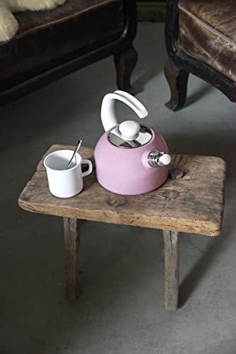 Riess, Flötenkessel Plus 2L, Gewicht 1,21kg, dreifach emailliert, Wasserkessel mit Flötenpfeife, Induktion, Retro, hergestellt in Österreich, LBH 26,2x18,4x21,9cm (ROSA/BUNT PASTELL, 2 l)