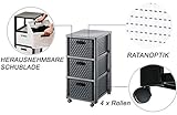 Rotho Country Rollcontainer mit 3 Schubladen in Rattan-Optik, Kunststoff (PP) BPA-frei, anthrazit, 3 x A4/18l (37.5 x 32.5 x 71.2 cm), Nicht zutreffend