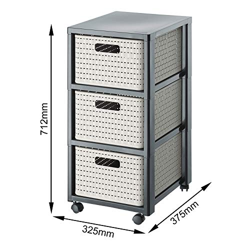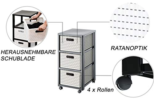 Rotho Country Rollcontainer mit 3 Schubladen in Rattan-Optik, Kunststoff (PP) BPA-frei, cappuccino, 3 x A4/18l (37.5 x 32.5 x 71.2 cm)