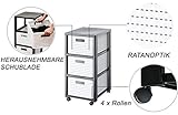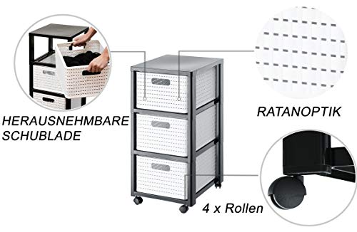 Rotho Country Rollcontainer mit 3 Schubladen in Rattan-Optik, Kunststoff (PP) BPA-frei, weiss, 3 x A4/18l (37.5 x 32.5 x 71.2 cm)